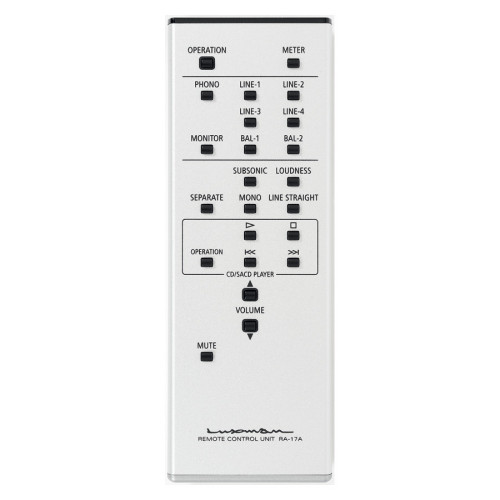 Są też dwie funkcje (filtr subsoniczny, tryb mono), których uruchomić… się nie da, bo Luxman L-505Z ich nie ma; pilot tego typu obsługuje też droższe, jeszcze bardziej bogato wyposażone integry, a ponadto podstawowe funkcje odtwarzaczy.