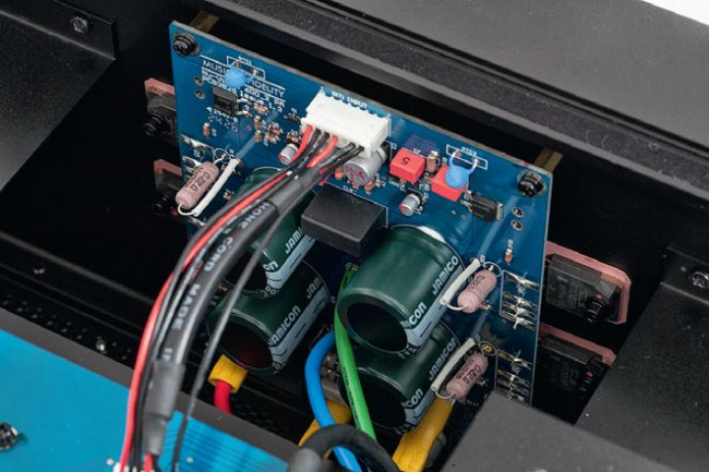 W sekcji przedwzmacniacza zaszły prawdopodobnie największe zmiany względem poprzedniej wersji integry – Nu-Vista 600. Ponownie wydzielono moduł leżący bezpośrednio przy gniazdach wejściowych – to spora płytka z wysokiej jakości przekaźnikami (w poprzedniku były stosowane scalone przełączniki). Następnie sygnały trafiają do poziomej, górnej płytki z nowym regulatorem głośności.