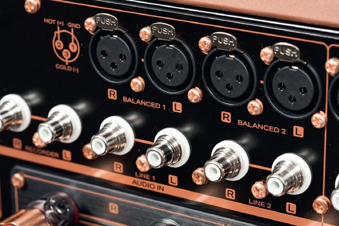 Marantz Model 10 ma w sumie pięć wejść liniowych, trzy RCA i dwa XLR, a do tego wejście gramofonowe. Jedno z wejść RCA jest związane z pętlą dla rejestratora. Wyjścia niskopoziomowe prawdopodobnie nie będą potrzebne, tak jak wejścia na końcówki mocy, chociaż…