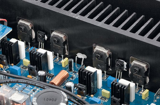 Komplet tranzystorów (para Toshiba 2SA1941/2SC5198 na kanał) znajduje się na jednym radiatorze, blisko jednego boku. Tranzystory te widuje się często w projektach hobbystycznych, a w szczególności… tzw. "klonach" słynnego… A1 (choć to bardziej wariacje na temat oryginału).