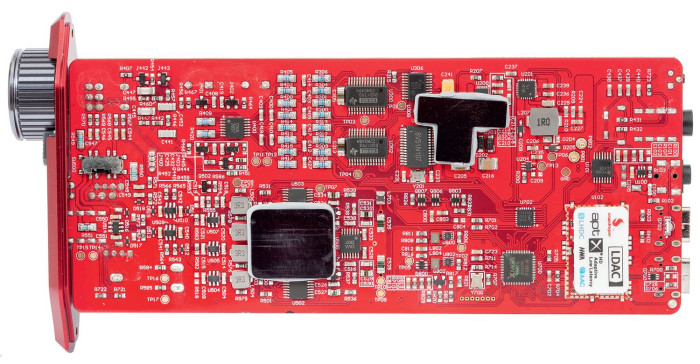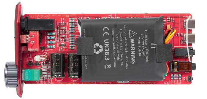 Cała elektronika ifi iDSD Diablo 2 musiała się zmieścić na niewielkiej (bo taka jest też obudowa) płytce. Widać wysokiej jakości elementy, takie jak rezystory Vishay czy kondensatory Panasonic (w części zasilającej, to dodatkowe filtry dla zewnętrznego zasilacza).