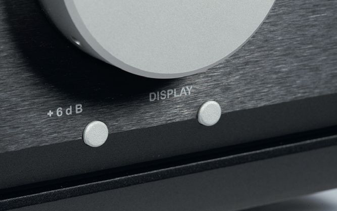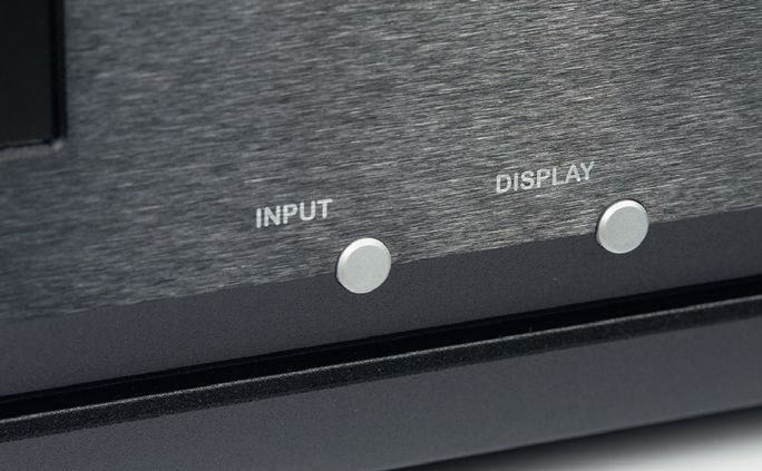 Tryby pracy wyświetlacza można zmieniać tak samo jak w przedwzmacniaczu PRE. Końcówka ma też przełącznik wejść – w formie niewielkiego przycisku.