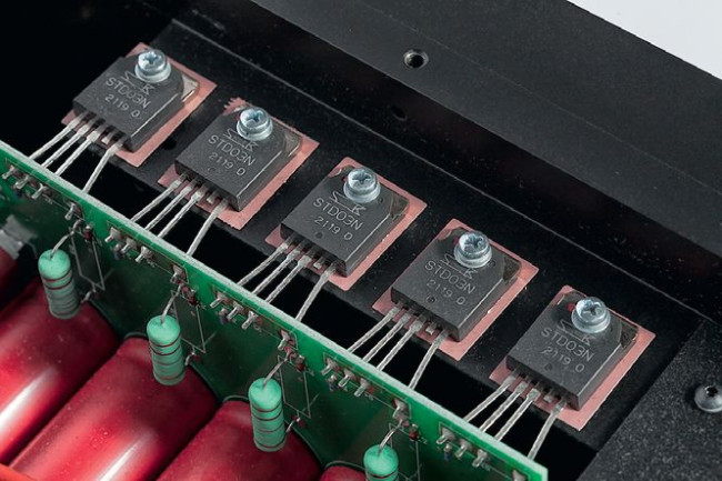 W każdym kanale zainstalowano baterię tranzystorów Sankena. PAS pracuje w klasie AB, ale prąd spoczynkowy jest dość wysoki; na tyle, by pierwsze 5 W wyprodukować w klasie A.