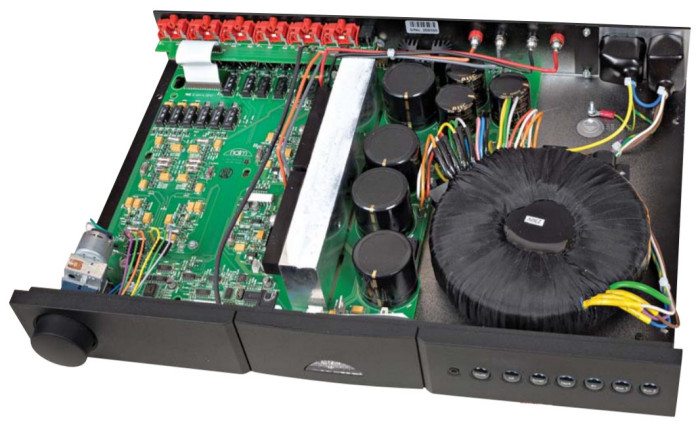 We wnętrzu widok typowy dla Naima - montaż powierzchniowy większości elementów, cecha wspólna z Arcamem, Cyrusem i Linnem. Wszystkie te firmy łączy upór w stosowaniu oryginalnych, ale często wyglądających archaicznie, "patentów" z zaskakującą na tym tle nowoczesnością w innych miejscach.