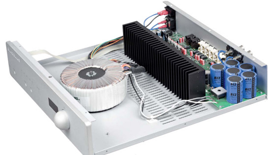 Końcówki mocy oparto w całości na elementach dyskretnych. W stopniu wyjściowym zastosowano bipolarne tranzystory Toshiby - po dwie, pracujące w push-pullu pary 2SA1943+2SC5200. Dokładnie te same elementy co w DLS-ie i Primare….