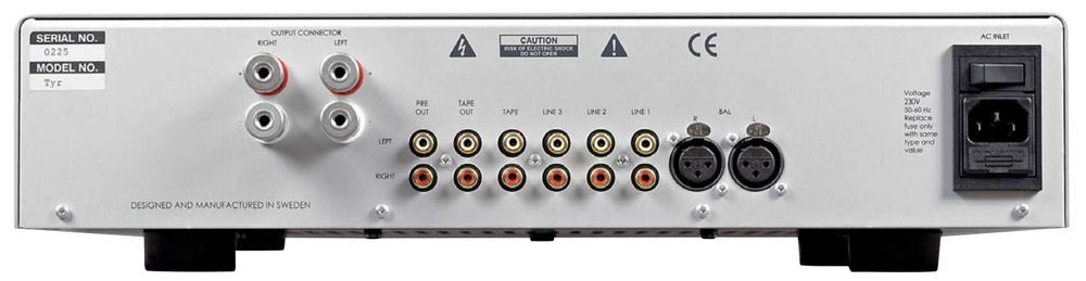 Są tam również wyjścia RCA do nagrywania (lub wzmacniacza słuchawkowego) i z przedwzmacniacza. Na skraju prawej strony umieszczono gniazdo sieciowe IEC z mechanicznym wyłącznikiem.