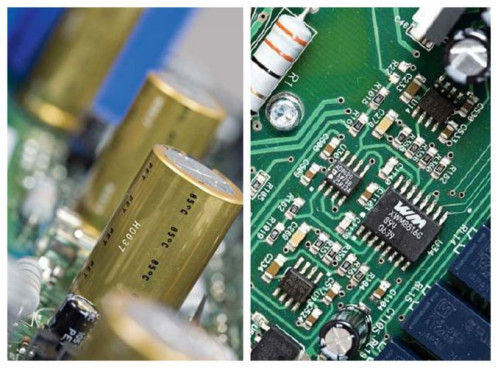 Obydwie końcówki otrzymały wspólną linię, gdzie mamy bardzo duży prostownik i baterię sześciu kondensatorów o łącznej pojemności 60 000 mikrofaradów. Przedwzmacniacz i stopnie wejściowe końcówki mają własne zasilanie - dla każdego kanału osobne.