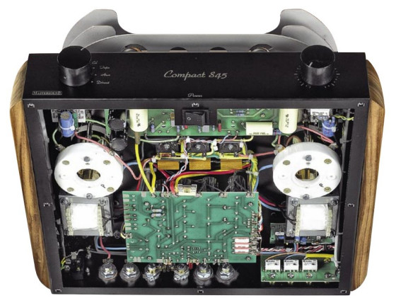 Dalej, w roli drivera, występują podwójne triody starszego typu, oktalowe, 6SN7, pochodzące z Rosji, z fabryki produkującej dla amerykańskiego Electro-Harmonixa. I wreszcie lampy końcowe – potężne triody Mastersound Compact 845, tym razem NOS Electron Tube.