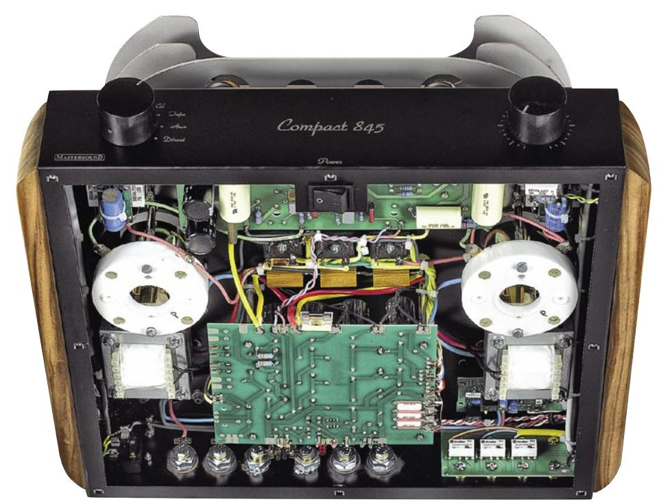 Wzmacniacz Mastersound Compact 845 oparty jest wyłącznie na triodach. Na wejściu każdego kanału pracuje podwójna trioda małej mocy 12AX7 pełniąca rolę bufora i wstępnego wzmacniacza. Lampy te zostały kupione w słowackiej firmie JJ Eelctronics.