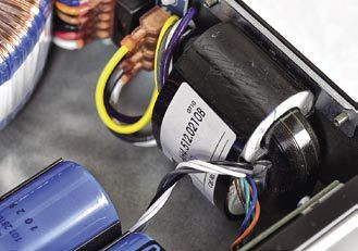 Uwagę zwraca przede wszystkim bardzo duży transformator toroidalny o mocy 1 kW przygotowany przez jednego z najbardziej znanych specjalistów, brytyjską firmę Noratel UK Ltd. Z trafa wychodzi kilka uzwojeń wtórnych - dla sekcji prądowej, dla modulatora i dla sekcji wejściowej.