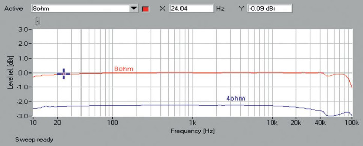 W fabrycznym opisie urządzeń znalazłem informacje o mocy 220 W przy 4 omach, jednak bliższe wczytanie się w specyfikacje ujawniło, że jest to moc dla wersji z dodatkowym, zewnętrznym zasilaczem, a ponadto nie zostało sprecyzowane, przy jakich zniekształceniach THD+N tak gigantyczna (jak na wzmacniacz lampowy) moc jest dostępna. Zwłaszcza w takich sytuacjach własne laboratorium jest nieocenione...