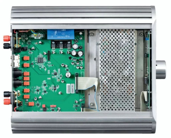 Na wyjściu tego układu znajdują się klasyczne filtry rekonstrukcyjne złożone z wysokiej klasy elementów biernych, kondensatorów i cewek, jednak dzięki staranności wykonania i optymalizacji filtrów udało się - zdaniem producenta (zweryfikujemy to w laboratorium) - uniknąć typowych bolączek (podbić/wzbudzeń) w użytecznym zakresie impedancji obciążenia. Wzmacniacz może pracować z kolumnami od 4 do 16 omów.