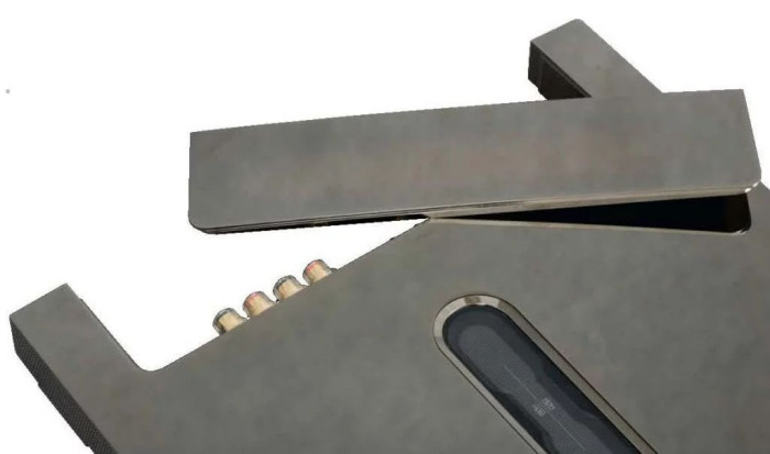 Obudowa wzmacniacza Devialet 240 jest mechanicznym majstersztykiem. Z góry widzimy kwadrat o boku 40 cm, aluminiowa rama ma 4 cm wysokości, a z przodu dostrzegamy lekki łuk. Wszystkie krawędzie są ostro ścięte, a powierzchnie aluminiowe ręcznie wypolerowano na wysoki połysk.