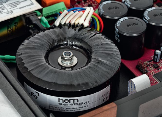 Napięcie zmienne (230 V) jest poddawane w pierwszej kolejności dwustopniowej, dokładnej filtracji, później zasilacz redukuje napięcie (sekcja liniowa opiera się na dużym transformatorze toroidalnym), zamienia je na prąd stały, i tutaj do gry wchodzi sekcja impulsowa, która według firmowej koncepcji ma zapewnić wyższą szybkość i sprawność układu; w związku z tym na samym końcu napięcie znowu czyszczą filtry.