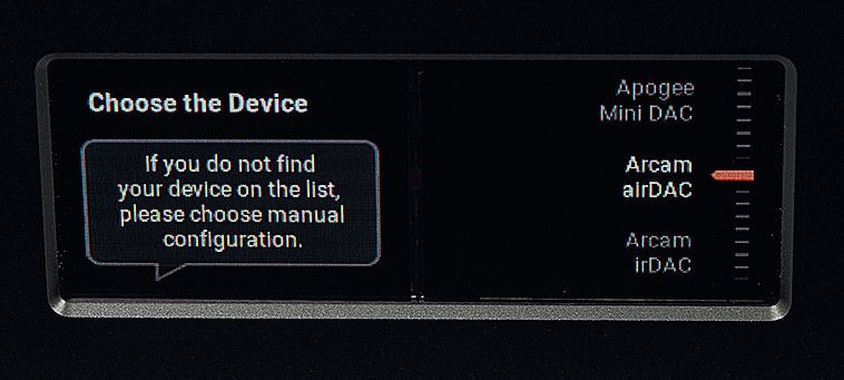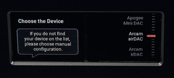 Korzystając z menu ekranowego, wybieramy markę i model sprzętu (DAC, przedwzmacniacz...), a Ferrum Hypsos, operując na wbudowanej bazie danych, zaproponuje optymalne parametry zasilania! Baza jest bardzo obszerna, będzie stale aktualizowana. Ustawiamy potrzebne napięcie wyjściowe, a także polaryzację.