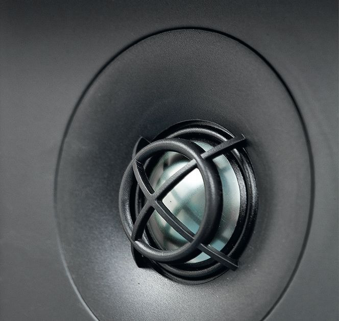 Przetworniki wysokotonowe to 25-mm kopułki aluminiowe; umieszczono je najbardziej na zewnątrz całego układu głośnikowego, jednak nie na samych skrajach obudowy, gdzie utworzono "skosy", unikając w ten sposób wyeksponowania ostrej krawędzi (jakie mamy na górze i na dole).
