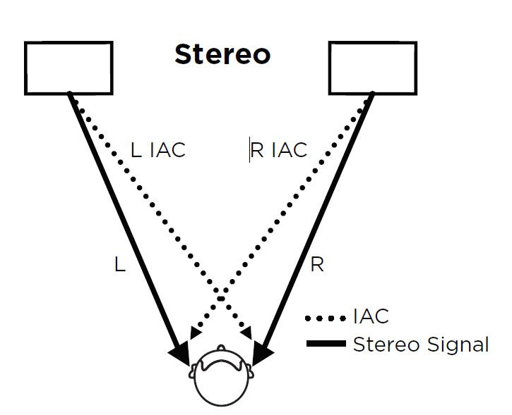 I wcale nie powoduje to zakłócenia w odbiorze przestrzeni – wręcz przeciwnie: dźwięk do "drugiego" ucha dociera z opóźnieniem, z przesunięciem fazowym, musi przebyć nieco inną drogę wokół małżowiny (która jest "w cieniu" głowy), ostatecznie sygnały biegnące do ośrodka słuchu w mózgu są inne z obydwu uszu (nawet gdy gra tylko jedna kolumna pary stereofonicznej) i pomagają lokalizować źródło dźwięku.