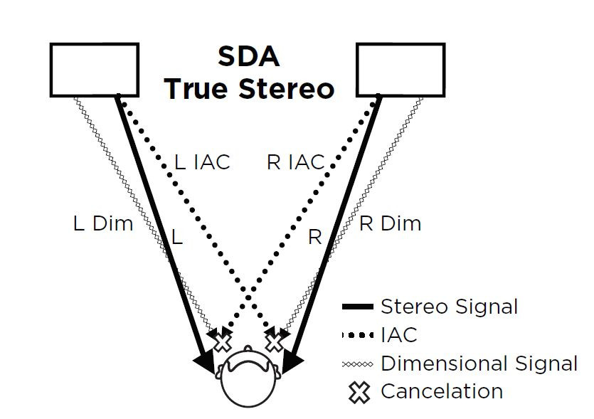 Polk Audio zmierza do czegoś dokładnie odwrotnego! Stara się wykreować za pomocą pary kolumn Legend 800 przestrzeń typową dla słuchawek. Producent oficjalnie nie formułuje swojego celu w taki sposób, to wstępne wnioski z naszej analizy. Polk Audio chce "poprawić" stereofonię, czyszcząc ją z efektu "przesłuchu międzyusznego" (interaural crosstalk").